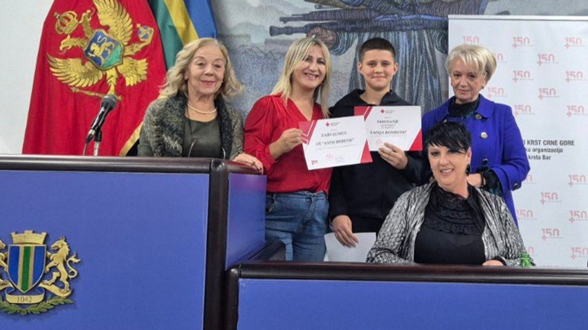 Na Svjetski dan volontera, u velikoj sali opštine Bar, uručene su nagrade najboljim učesnicima literarnog i likovnog konkursa koji je raspisala Opštinska organizacija Crvenog krsta Bar za učenike osnovnih i srednjih škola.