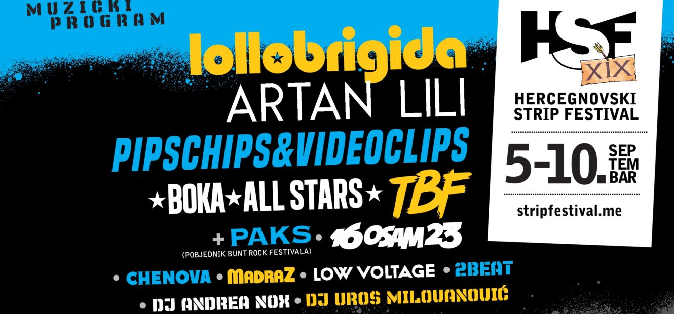 „Hercegnovski strip festival i ove godine potvrđuje činjenicu da, osim najboljih sadržaja posvećenih devetoj umjetnosti, ima i jedan od najboljih muzičkih programa. Tokom trajanja festivala svih šest večeri HSF organizuje i vrhunske koncerte za koje je ulaz besplatan, pa tako na veče otvaranja, u petak 5. septembra, od 22 sata na tvrđavi Forte Mare će nastupiti poznati sastav ‘Lollobrigita’ koji predvodi Ida Prester, a kao predgrupa će nastupiti mladi beogradski sastav ‘Paks’ pobjednik Bunt Rock festivala sa kojim HSF sarađuje skoro punu deceniju“, saopštili su organizatori.
