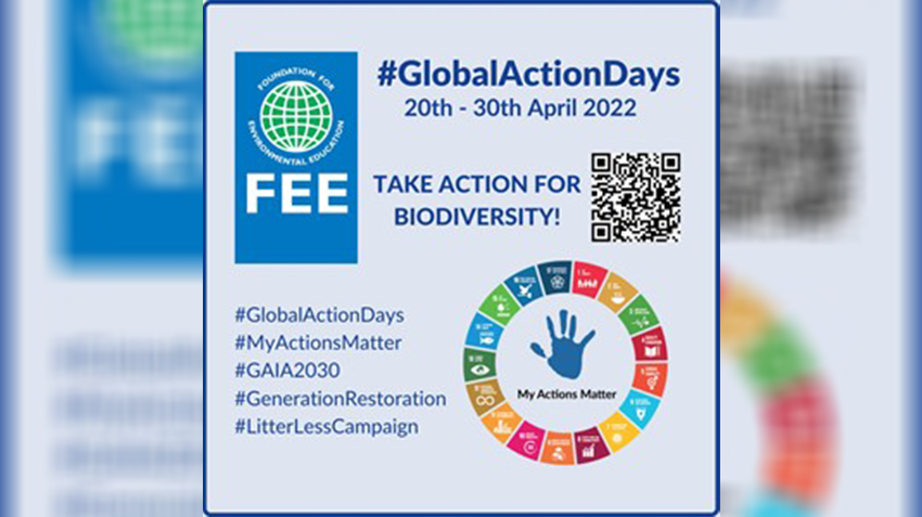 Fondacija za ekološku edukaciju (FEE) poziva škole da učestvuju u Danima globalne akcije (#GlobalActionDays) koji će biti održani od 20. aprila do 7. maja. U okviru ove aktivnosti biće organizovano pet malih akcija koje štite, obnavljaju i prezentuju globalni biodiverzitet: Uranjanje u prirodu (Nature Dipping); Detektivi prirode (Nature Detectives); Život u opasnosti (Life in Danger); Oznake koje treba tražiti (Labels to Look For) i Zelena žurka! (Have a Green Party!).
