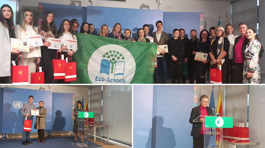 Zelene zastave i sertifikati za sticanje statusa međunarodne Eko-škole uručene su obrazovno-vaspitnim ustanovama koje su u dvogodišnjem ciklusu uspješno realizovale sve programom predviđene aktivnosti. Dodjelu ovih priznanja organizovao je Zavod za školstvo u saradnji sa Sistemom Ujedinjenih nacija u Crnoj Gori u zgradi UN u Podgorici.