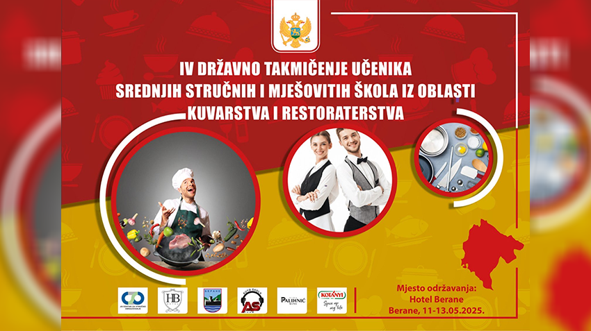 Centar za stručno obrazovanje će, u skladu sa svojim nadležnostima, održati IV Državno takmičenje učenika srednjih stručnih i mješovitih škola iz Crne Gore iz oblasti kuvarstva i IV Državno takmičenje učenika srednjih stručnih i mješovitih škola iz Crne Gore iz oblasti restoraterstva od 11. do 13. maja 2025. godine u hotelu „Berane“, u Beranama.