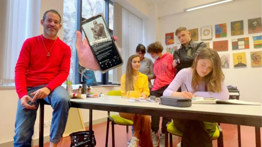 Radionice profesora Romea imaju za cilj proučavanje fenomenoloških aspekata savremene vizuelne umjetnosti u učionici, povezujući sinestetske momente zahvaljujući prerađivanju ikonografije mnogih savremenih autora ; od JR-a do Kounellis-a, od Capa-a do Wildt -a, kako bi ih doveli u dijalog u kontekstu mira. Svaki čin semantičkog pisanja predviđa aktivno učešće studenata u potrazi za transvezalnim i autohtonim umjetničkim medijima kao npr. sakupljanje lišća za oponašanje starih crnogorskih brava na vratima. Radionice stoga imaju cilj eksperimentalni dijalog savremene umjetnosti i geolokalne tradicije.