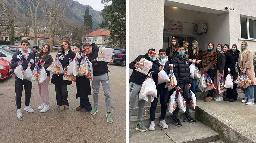 Povodom novogodišnjih praznika, učenici ekonomske struke kotorske gimnazije posjetili su Dječije odjeljenje Opšte bolnice Kotor, u pratnji profesorica Suzane Kordić i Jovane Kekić.