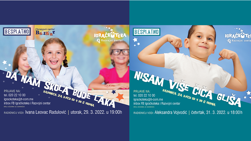 U utorak, 29. marta, u 19 sati biće održana radionica „Da nam škola bude laka“ koju vodi Ivana Leovac-Radulović. Ona će biti realizovana u saradnji sa obrazovnim centrom Baltazar, koji ima licencu za sprovođenje programa.