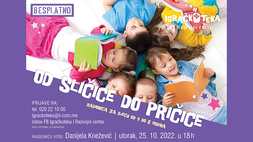 Igračkoteka i Razvojni centar Podgorica udruženja Roditelji organizuju sjutra, u 18 časova, edukativnu radionicu „Od sličice do pričice“.