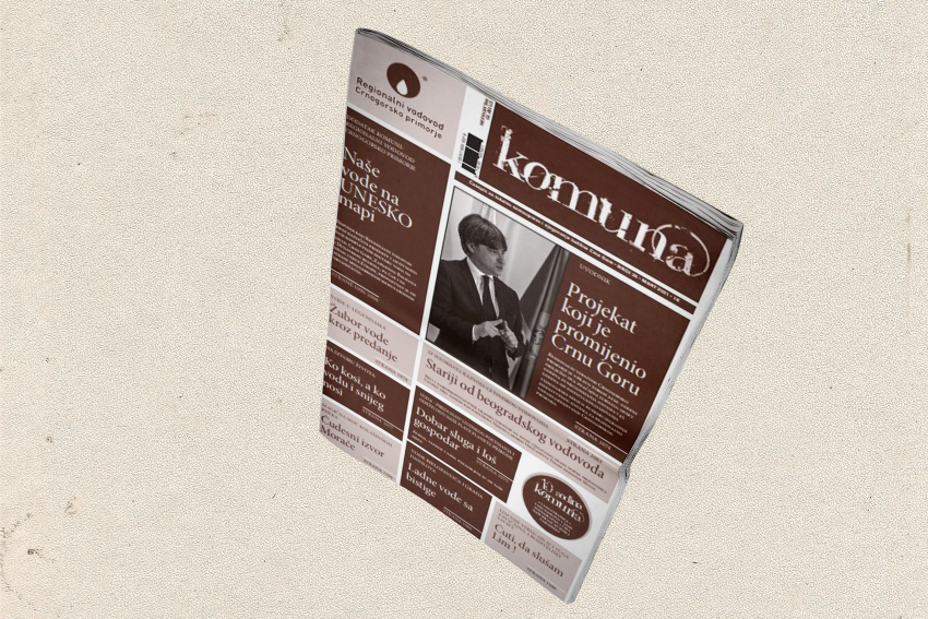 Pošto je novi broj Komune posvećen tematu voda, donosi između ostalog i nekoliko stranica posvećenih istoriji, razvojnim projektima, upravljanju vodama i viziji razvoja Regionalnog vodovoda Crnogorsko primorje, zatim klimatskim promjenama i upravljama vodama Crne Gore iz pera prof. dr Mihaila Burića, kao i hidrotehnici, kao grani građevine i odnosu sa vodama u tekstu prof. dr Gorana Sekulića u tekstu sa naslovom „Blago koje je rađalo civilizaciju“.