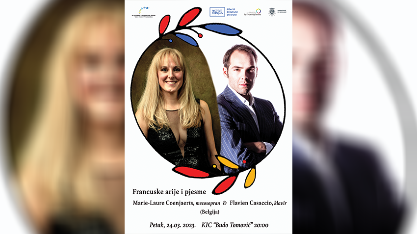 Koncert francuskih arija i pjesama u izvođenju renomiranih belgijskih umjetnika, mecosoprana Mari-Lor Kunjarc i pijaniste Flavijena Kazača, biće održan u okviru manifestacije „Frankofonija u Crnoj Gori“ u petak, 24. marta, u velikoj sali KIC-a „Budo Tomović“, s početkom u 20 sati.