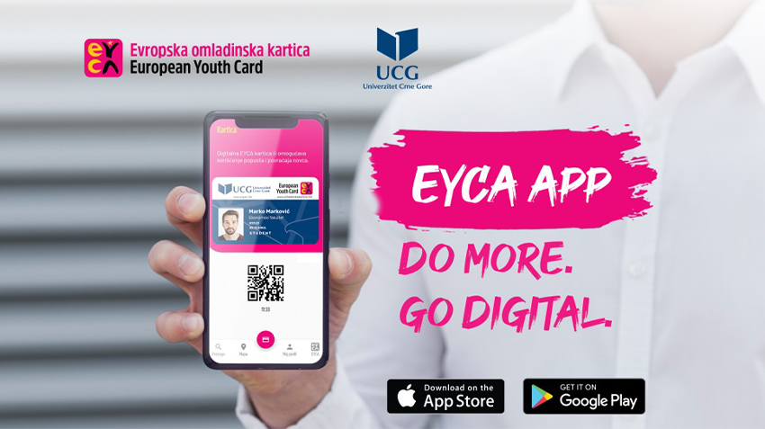 Pozvani su studenti koji su korisnici EYCA kartice, da svoju digitalnu verziju pod imenom EYCA Montenegro preuzmu na linkovima: Android Play Store (https://play.google.com/store/apps/details?id=alicorn.me.eycaapp) i Apple App Store (https://apps.apple.com/us/app/eyca-montenegro/id1600643313).