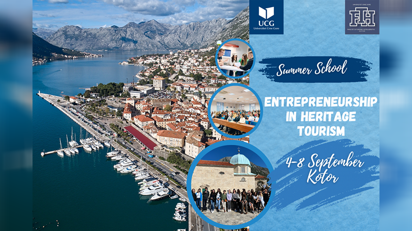 Fakultet za turizam i hotelijerstvo Univerziteta Crne Gore (UCG) organizuje drugu po redu međunarodnu ljetnju školu „Preduzetništvo u turizmu baštine“ u septembru. Ljetnja škola, akreditovana u okviru Erasmus+ projekta koncipirana je da omogući studentima i mladim profesionalcima u sektorima kultura i turizam sticanje savremenih znanja i vještina u oblasti kulturnog turizma, upravljanja kulturnom baštinom, održivog preduzetništva i inovacija u turizmu baštine.
