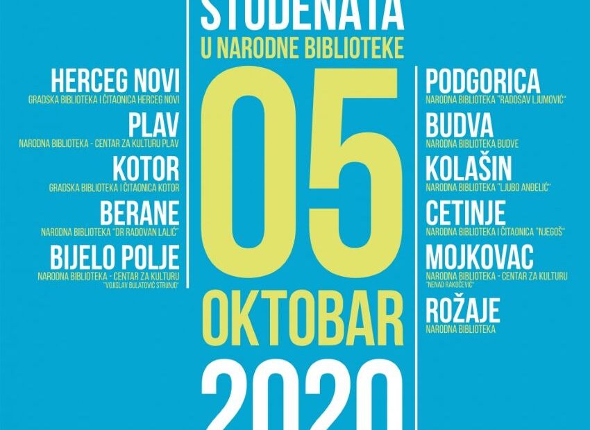 Centralna univerzitetska biblioteka (CUB) Univerziteta Crne Gore (UCG) obilježiće Nacionalni dan podizanja svijesti o bibliotekama, koji će se 5. oktobra održati u jedanaest narodnih biblioteka u Crnoj Gori akcijom pod nazivom „Biblioteke za studente”.