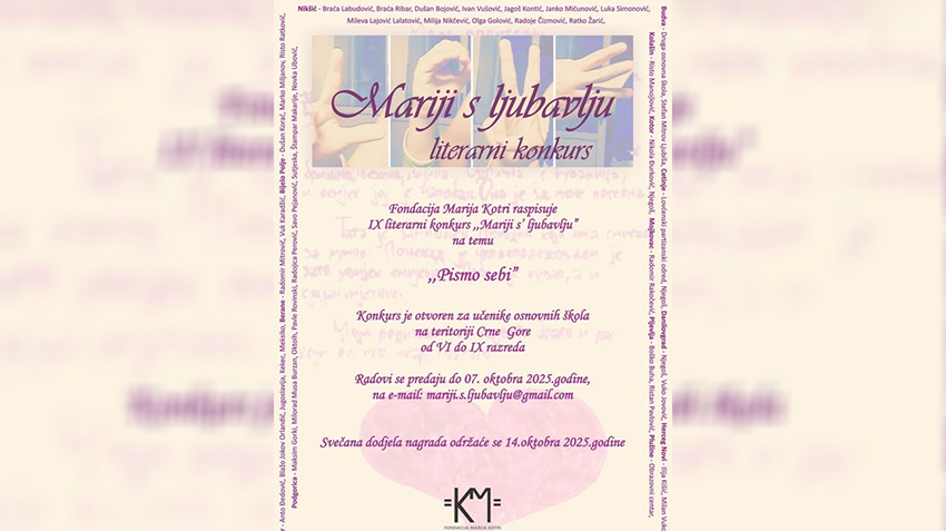 Najboljim mladim stvaraocima iz crnogorskih osnovnih škola na IX literarnom konkursu „Mariji s ljubavlju“ uručene su nagrade u Radio televiziji Nikšić u okviru emisije „Nikšićko popodne“. Tema konkursa je „Pismo sebi, a učesnici su nadmetali u dvije kategorije ‒ prva za đake VI i VII razreda, a druga za takmičare VIII i IX razreda.