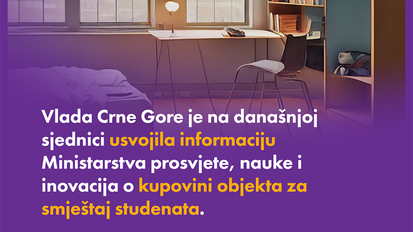 Vlada Crne Gore usvojila je  informaciju Ministarstva prosvjete, nauke i inovacija o kupovini objekta za smještaj studenata. Naime, nakon završenog postupka javne nabavke, odabrana je ponuda kompanije Čelebić City D.O.O. Podgorica za objekat u Donjoj Gorici u kojem će biti smješteno najmanje 230 studenata, saopšteno je iz Ministarstva prosvjete, nauke i inovacija.