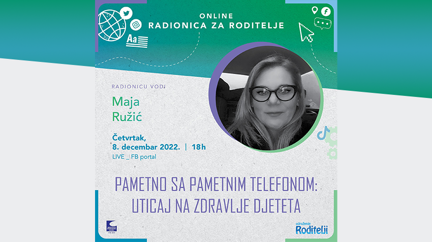 U saradnji sa Agencijom za elektronske medije, udruženje Roditelji organizuje u četvrtak, 8. decembra, u 18 sati, onlajn predavanje za roditelje „Pametno sa pametnim telefonom: Uticaj na zdravlje djeteta“, na Facebook stranici portala Roditelji.me. kada će biti održan razgovor sa prof. dr sc informatike i pedagogije iz Hrvatske Majom Ružić.