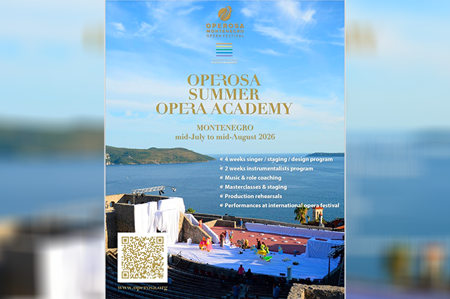 „U periodu od 15. jula do 8. avgusta na Cetinju će se prvi put održati Operosa Summer Opera Academy (OSOA) – novi međunarodni program namijenjen mladim operskim pjevačima i muzičkim profesionalcima. Akademiju organizuje Operosa Montenegro Opera Festival u saradnji sa Muzičkom akademijom na Cetinju. Operosa Summer Opera Academy predstavlja novi programski segment Operose i jednu od prvih međunarodnih ljetnjih akademija ovog tipa u regionu, osmišljenu kao intenzivna edukativna i umjetnička platforma za razvoj mladih umjetnika“, piše u saopštenju OSOA tima.