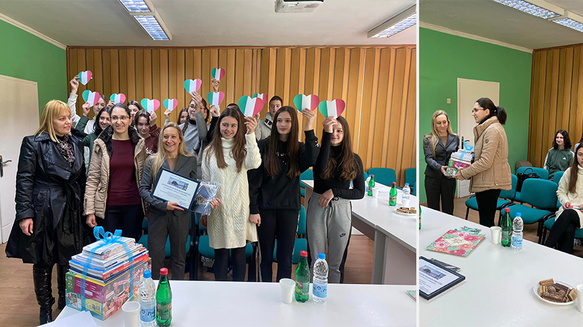 Inače, ova donacija obezbijeđena je na osnovu zahtjeva koji je nastavnica italijanskog jezika mr Granica Šućur uputila  ranije Ambasadi i Ministarstvu vanjskih poslova Italije i  tom prilikom dostavila listu potrebnog didaktičkog materijala.