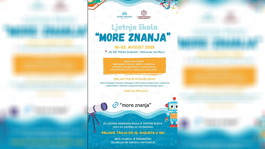 OŠ „Mirko Srzentić“ iz Petrovca organizovaće za učenike osnovnih škola iz opštine Budva Ljetnju školu „More znanja“ od 18. do 22. avgusta.