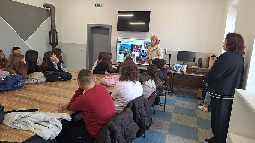 Profesorica Bajec održala je zanimljivo predavanje na temu „Slovenija ‒ život u Evropskoj uniji“. Učenici su na primjeru dva grada ‒ Nova Gorica (Slovenija) i Gorica (Italija) bili u prilici da saznaju kako se život mijenja ulaskom u EU. Ove gradove, koje je nekada razdvajala granica, danas spaja saradnja i zajednički evropski put što je jasna ilustracija benifita članstva.