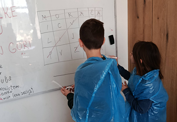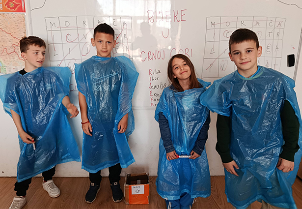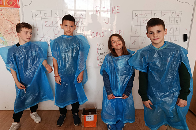 Učionica je na trenutak postala geografska karta Crne Gore. Svaki đak predstavljao je po jednu rijeku, a poseban utisak ostavili su kostimi. Koristeći plave vreće mališani su se transformisali u „plave rijeke“.
