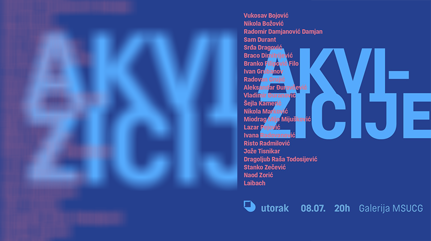 Izložba „Akvizicije“, koju potpisuju kustoskinje Nikolina Zuber i Biljana Keković, biće otvorena u utorak, 8. jula, u 20 časova, u Galeriji Muzeja savremene umjetnosti.