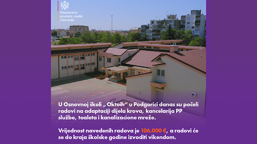 U Osnovnoj školi „Oktoih“ u Podgorici počeli su radovi na adaptaciji dijela krova, kancelarija pedagoško-psihološke službe, toaleta i kanalizacione mreže.