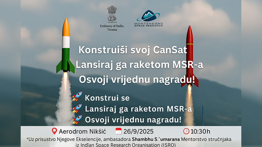 Za studente i srednjoškolce koji žele da konstruišu svoj mini satelit i lansiraju ga pravom raketom organizacija Montenegro Space Research, u saradnji sa Ambasadom Indije u Beču, organizuje CanSat Montenegro 2025 – događaj 26. septembra na aerodromu u Nikšiću.