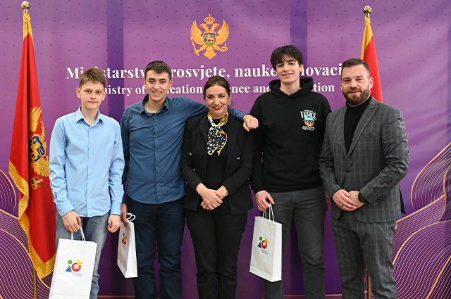 Ministarka prosvjete, nauke i inovacija prof. dr Anđela Jakšić-Stojanović i direktor Ispitnog centra mr Miloš Trivić primili su učenike koji su na Državnom takmičenju ostvarili maksimalnih 100 od 100 bodova.