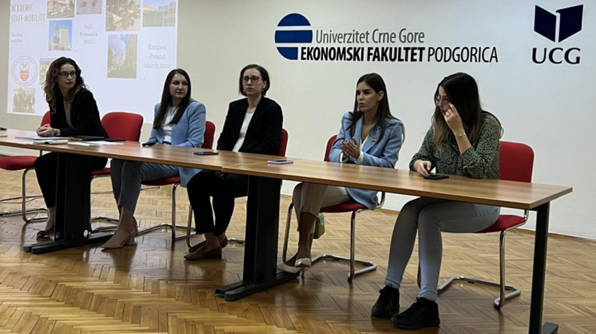 Studentkinja treće godine, Iva Vujović, prezentovala je svoje iskustvo učešća na CEEPUS i Eramsus+ mobilnostima, putem kojih je po jedan semestar osnovnih studija provela na Univerzitetima iz Poljske i Austrije. Dodatno, saradnice u nastavi na Ekonomskom fakultetu, dr Milica Muhadinović i mr Jelena Jovović predstavile su iskustvo mobilnosti u cilju obuke, sa jedne, te mobilnosti u cilju držanja nastave, sa druge strane.
