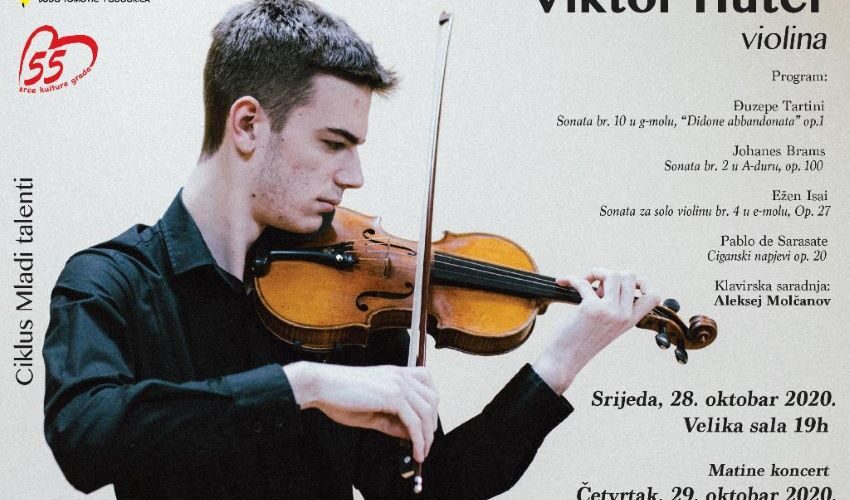 Mladi crnogorski violinista Viktor Huter prirediće solistički koncert u okviru ciklusa „Mladi talenti“ u KIC-u „Budo Tomović“ 28. oktobra u 19 sati. Koncert će biti repriziran dan kasnije, 29. oktobra…