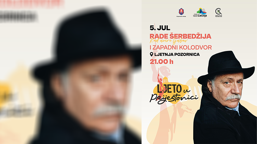 U okviru manifestacije „Ljeto u Prijestonici“, Prijestonica Cetinje, Turistička organizacija Prijestonice i Centar za kulturu imaju čast da najave jedno od najiščekivanijih kulturnih događaja ovog ljeta – veče sa legendarnim glumcem, pjesnikom, rediteljem i muzičarem Radom Šerbedžijom.