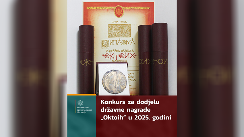 Ministarstvo prosvjete, nauke i inovacija raspisalo je konkurs za dodjelu Državne nagrade ,,Oktoih“ za 2025. godinu, koju mogu dobiti pojedinci i ustanove za ostvarene izuzetne rezultate u oblasti  vaspitanja i obrazovanja, kao i učeničkog i studentskog standarda, saopšteno je iz tog resora.