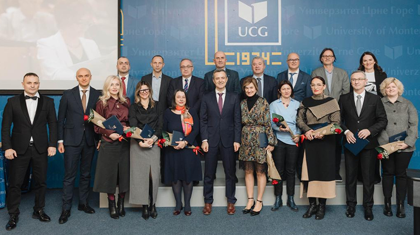 Priznanja za doprinose naučnoistraživačkog, umjetničkog i stručnog rada na organizacionim jedinicama Univerziteta dobili su doc. dr Ema Alihodžić Jašarović sa Arhitektonskog fakulteta, doc. dr Ivan Radević sa Ekonomskog fakulteta, prof. Dubravka Drakić sa Fakulteta dramskih umjetnosti, prof. mr Nataša Đurović sa Fakulteta likovnih umjetnosti, prof. dr Nataša Ružić sa Fakulteta političkih nauka, prof. dr Bojan Mašanović sa Fakulteta za sport i fizičko vaspitanje, doc. dr Duško Vujačić sa Fakulteta za turizam i hotelijerstvo, prof. dr Olivera Popović sa Filološkog fakulteta, prof. dr Dragan Burić sa Filozofskog fakulteta, doc. dr Ivana Ćipranić sa Građevinskog fakulteta, prof. dr Igor Vušanović sa Mašinskog fakulteta, prof. dr Elvir Zvrko sa Medicinskog fakulteta, prof. dr Željko Jaćimović sa Metalurško-tehnološkog fakulteta, prof. mr Predrag Janković sa Muzičke akademije, prof. dr Špiro Ivošević sa Pomorskog fakulteta, prof. dr Gordana Paović Jeknić sa Pravnog fakulteta, prof. dr Svjetlana Terzić sa Prirodno-matematičkog fakulteta i dr Aleksandar Joksimović sa Instituta za biologiju mora.