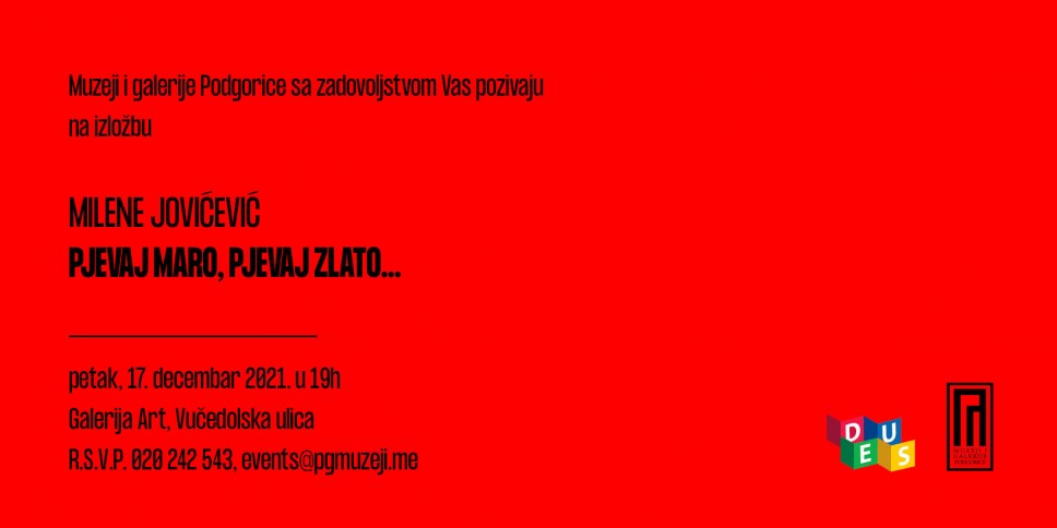 Muzeji i galerije Podgorice, u partnerstvu sa UNDP, organizuju izložbu prof. Milene Jovićević sa Fakulteta likovnih umjetnosti na Cetinju, pod nazivom „Pjevaj Maro, Pjevaj Zlato…”.