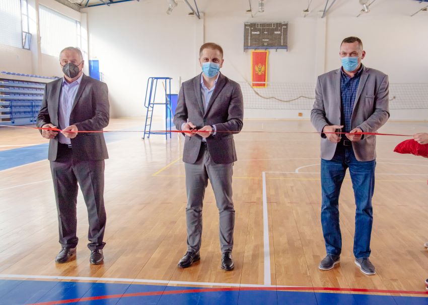 On je, kako stoji u saopštenju Ministarstva prosvjete, kazao da je u okviru pomenute adaptacije zamijenjen je parket u cjelosti, ugrađen novi sistem rasvjete, saniran je krov, a plan je da u narednom periodu budu rekonstruisane i tribine.