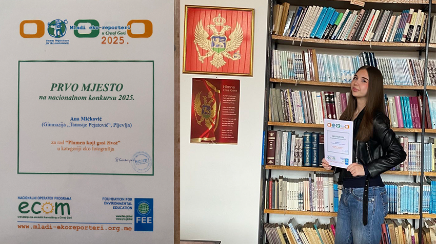 U kategoriji eko fotografija rad pod nazivom „Plamen koji gasi život“ učenice pljevaljske Gimnazije ,,Tanasije Pejatović“ Ane Mićković osvojio je prvo mjesto na ovogodišnjem takmičenju ,,Mladi ekoreporteri 2025“. Prema odluci žirija, a na osnovu plasmana, tematike kojom se bave i ispunjenosti kriterijuma nagrađenih radova, učenica Mićković predstavljaće Crnu Goru na međunarodnom takmičenju ,,Young Reporters for the Environment 2025“.