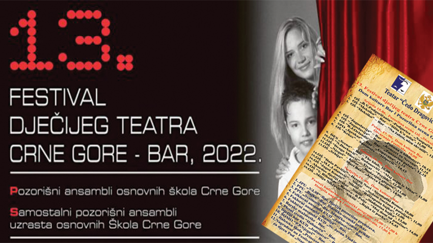 U Baru danas počinje XIII festival dječijeg teatra Crne Gore. Prema riječima direktora ove manifestacije mr Miodraga Banovića, prijavljeno je 19 pozorišnih ansambala sa 225 učesnika, a u pratećem umjetničkom programu nastupiće još oko 200 mladih umjetnika iz Bara.