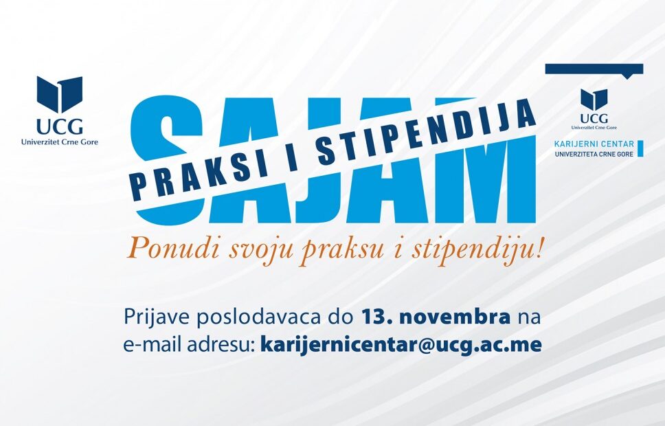 Kancelarija za razvoj karijere i cjeloživotno učenje Univerziteta Crne Gore pozvala je poslodavce da se do 13. novembra prijave za učešće na trećem Sajmu praksi i stipendija.