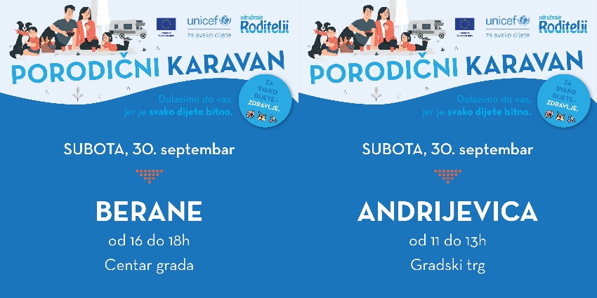„Porodični karavan dio je projekta koji udruženje Roditelji realizuje u saradnji sa UNICEF-om, a uz finansijsku podršku Delegacije Evropske unije u Crnoj Gori. Ova zanimljiva i korisna aktivnost sprovodi se radi uključivanja i osnaživanja lokalnih zajednica da obezbijede uslove neophodne za optimalan rast i razvoj djece. U toku obilazaka gradova realizuje se nekoliko različitih tematskih aktivnosti koje doprinose boljem informisanju roditelja o važnim temama koje se odnose na rast i razvoj djece kao što su dojenje, ishrana, vakcinacija, fizička aktivnost, značaj kontakta, igre i ograničavanja upotrebe tehnoloških sredstava koja nijesu namjenjena djeci.