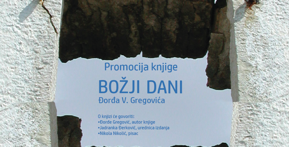 U utorak, 16. septembra, s početkom u 19 časova, u centralnoj knjižari Zavoda za udžbenike i nastavna sredstva – Podgorica (Novaka Miloševa 36, Podgorica) biće upriličena promocija zbirke priča „Božji…