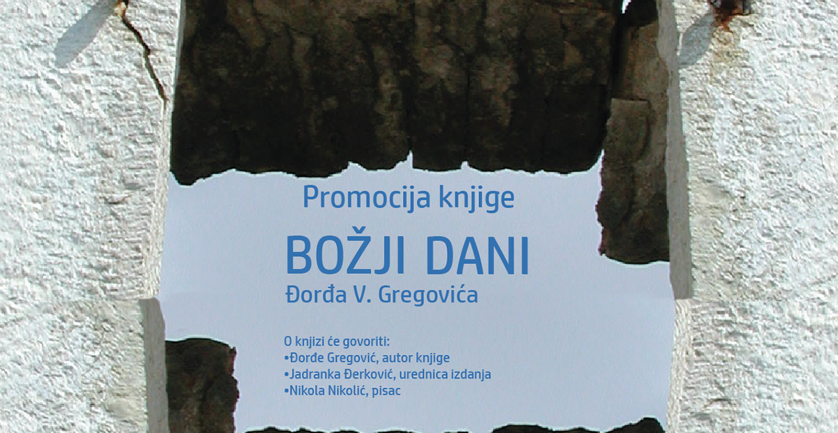 U utorak, 16. septembra, s početkom u 19 časova, u centralnoj knjižari Zavoda za udžbenike i nastavna sredstva – Podgorica (Novaka Miloševa 36, Podgorica) biće upriličena promocija zbirke priča „Božji dani“ autora Đorđa V. Gregovića.
